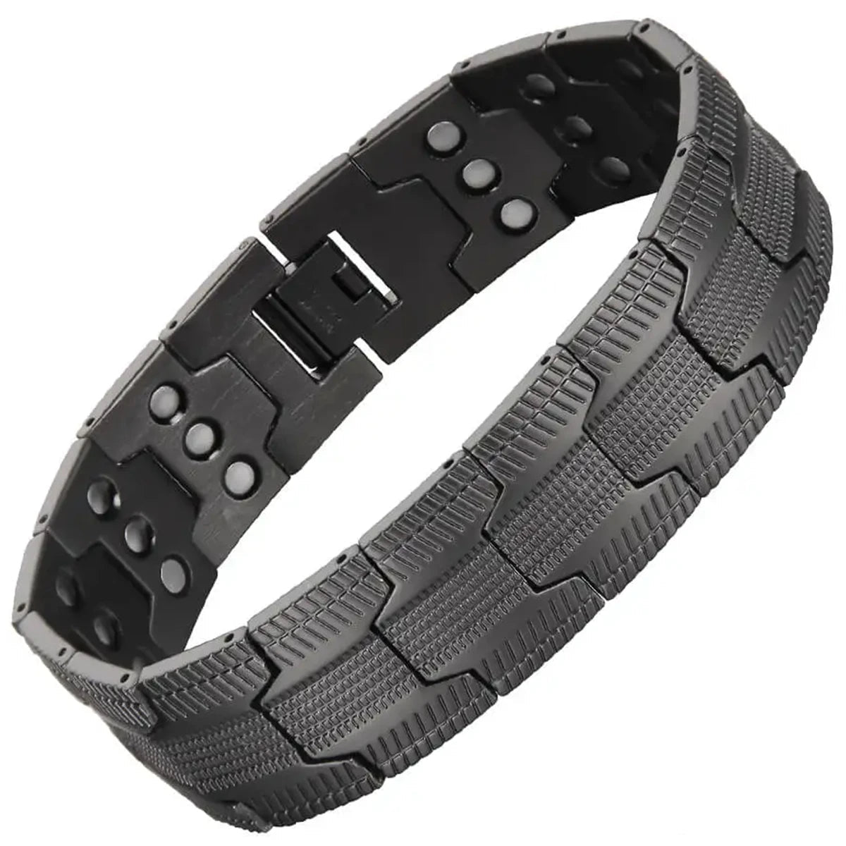 With its bold geometric link chain design, it embodies masculine confidence while promoting wellness and vitality. Perfect for men with demanding routines, long hours at work, or anyone seeking extra energy and focus.
