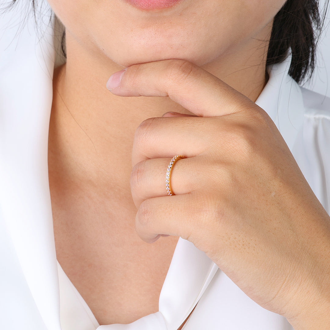 Endlessly elegant. The birthstone eternity stacking ring adds a vibrant, personal touch to any look. Perfect alone or stacked for a colorful, meaningful statement.