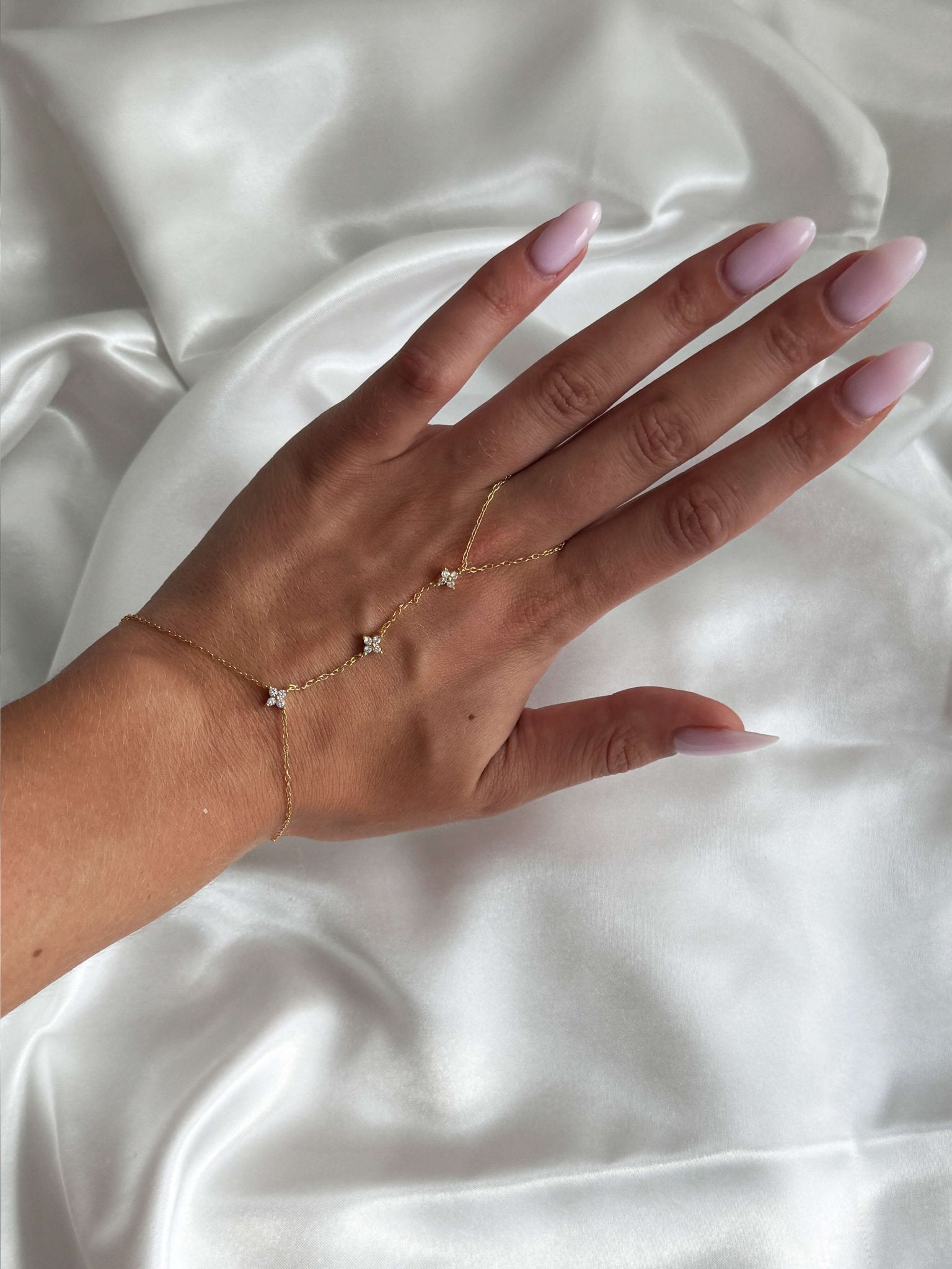 The Cora Spark Hand Chain is the perfect accessory to complement any outfit, whether you're dressing up or keeping it casual. With its timeless design and modern finish, this hand chain is the epitome of effortless elegance. Crafted from high-quality stainless steel and available in radiant 14k gold plating or polished silver, it offers lasting shine, durability, and a lightweight feel for comfortable wear. Its refined sparkle adds a sophisticated, eye-catching touch to your look, making it ideal for both everyday styling and special occasions. Make the Cora Spark Hand Chain yours today and add a graceful, luminous highlight to every ensemble.