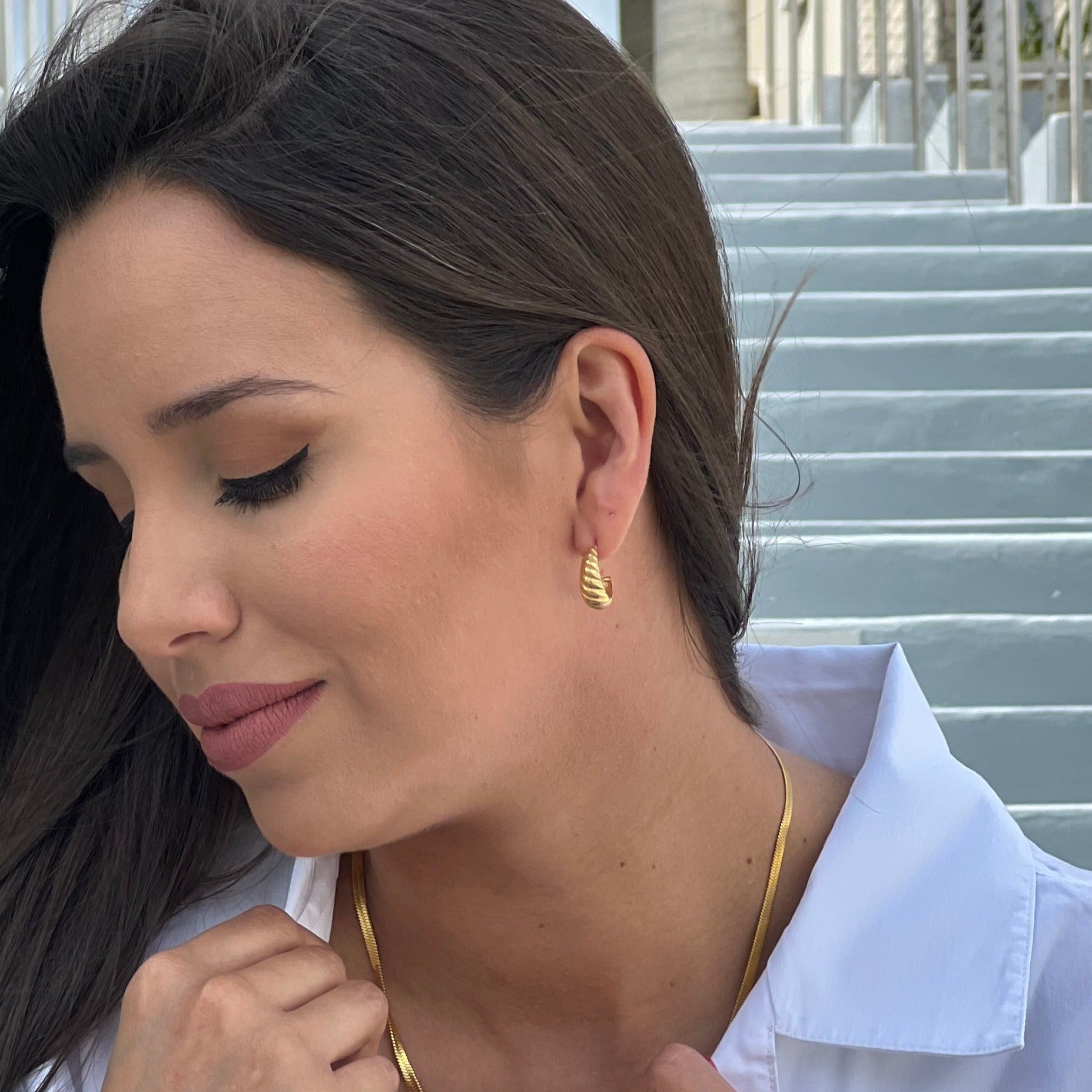 Elegant and eye-catching, these hoops are perfect for everyday wear or a luxurious evening out.