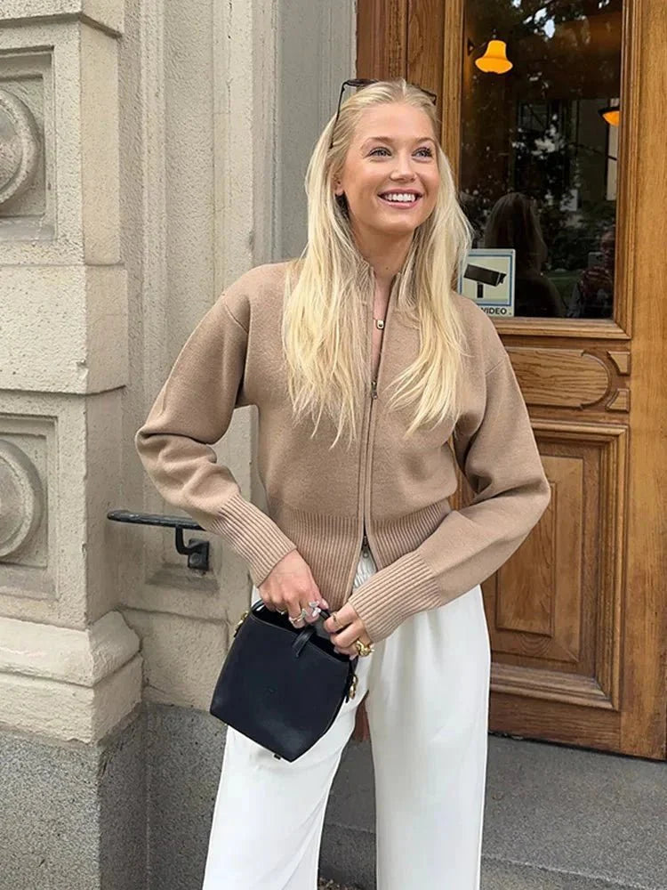 Discover the perfect blend of comfort and style with our Women's Casual Knitted Cardigan. Designed for the autumn and winter seasons, this cardigan features a stylish zipper and long sleeves, making it an ideal choice for your everyday commute.