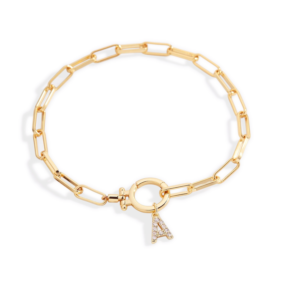 Fresh, modern, and effortlessly personal. This sleek mint paperclip bracelet is paired with a shimmering pavΓ© initial charm for the perfect touch of sparkle. Lightweight and stylishβ€”wear it solo or stack it up.
