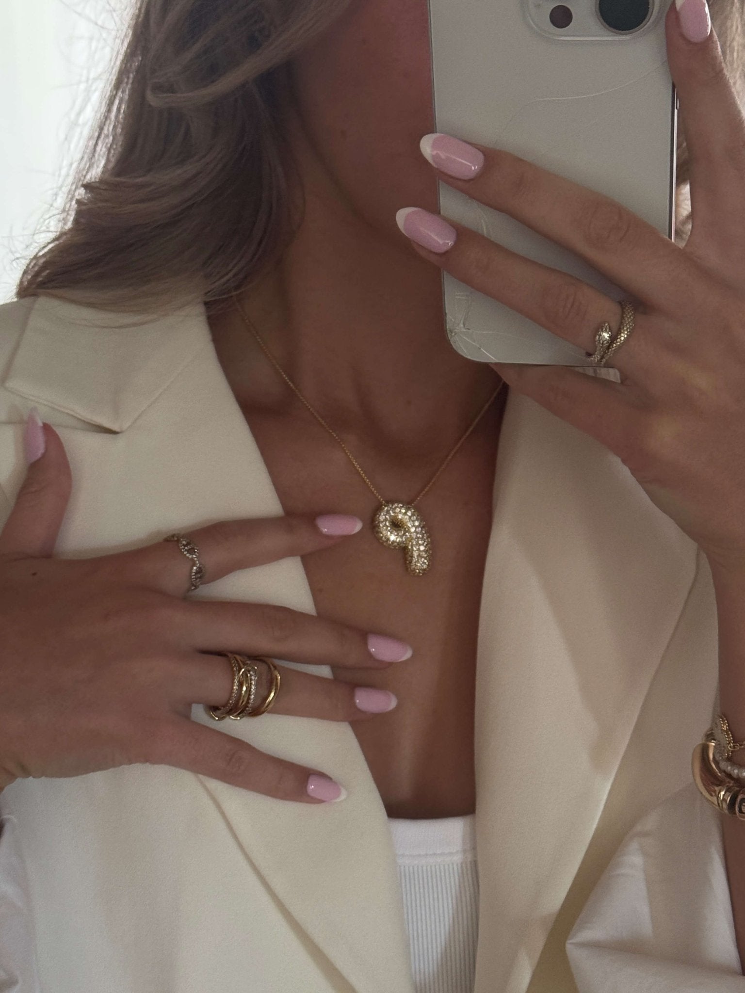 Pavé Bubble Initial Pendant Necklace