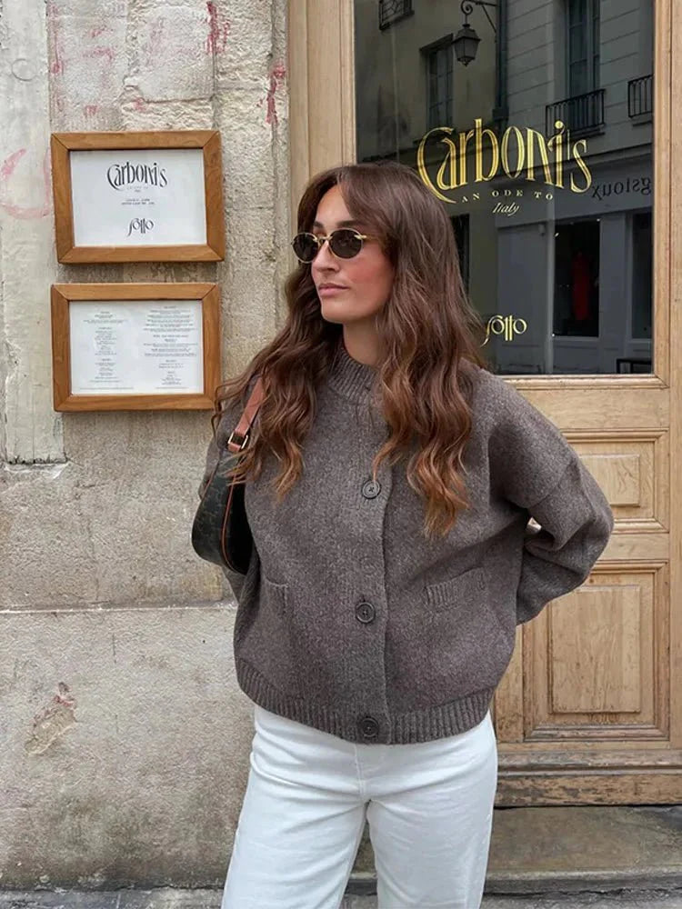 Discover the perfect blend of style and comfort with our Zoey Knitted Cardigan. This chic long sleeve sweater features a single-breasted design and convenient pockets, making it an essential addition to your fall wardrobe.